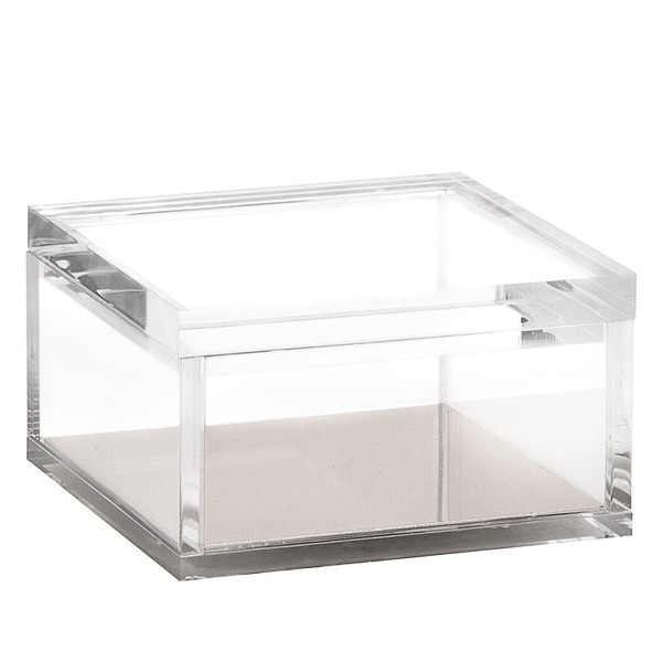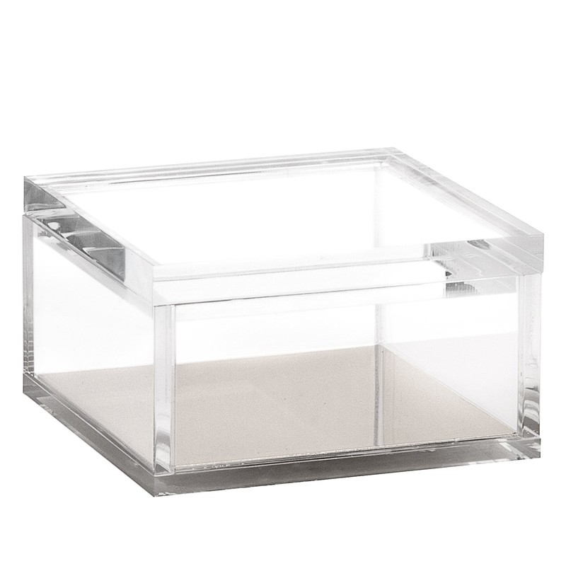 - Clear heavy-duty acrylic with lid comes with two color choices of a gold or silver bottom in the box. Individual boxes are stackable to make best use of your workspace.