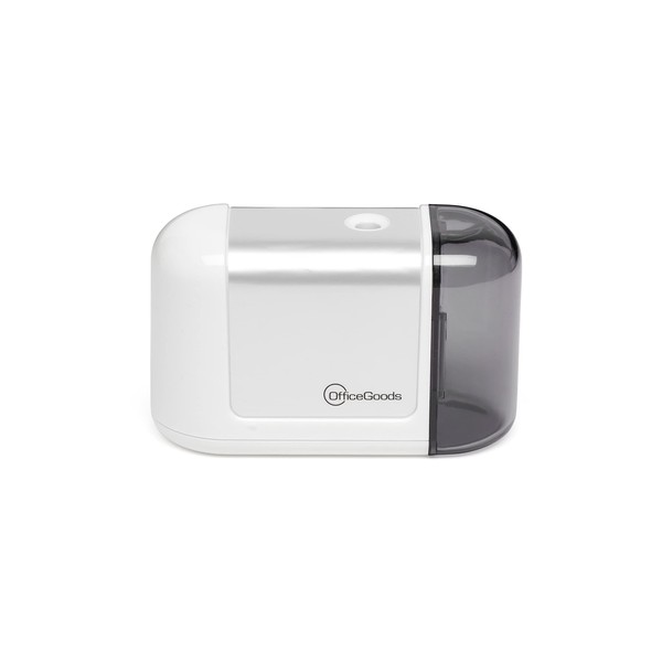 OfficeGoods Mini-Pro Automatic Pencil Sharpener - Cordless Portable Sharpener - Battery Operated - Compact & Powerful for Home, Office & School - White
