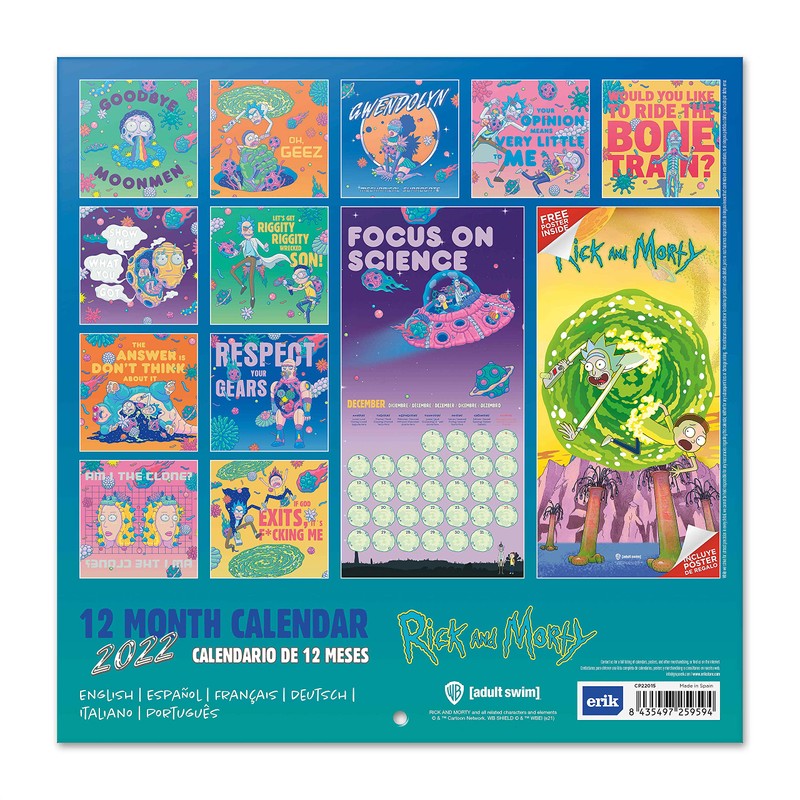 - 2022 Wall Planner - The monthly planner features 12 specially designed images based on the crazy series. Put a Morty to your Rick and decorate your room with the free poster that is included with this calendar.