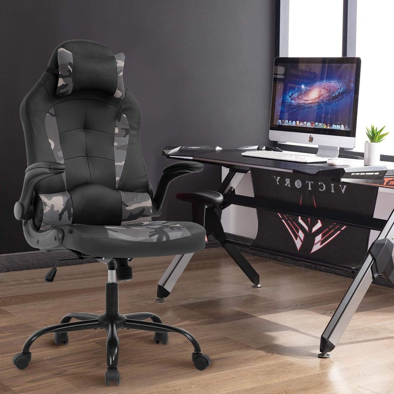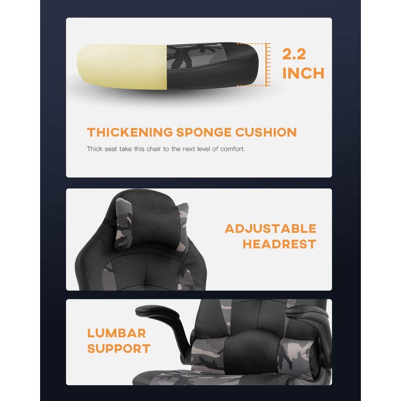 OffiClever Racing Style Office High Back Desk Executive PU Leather Rolling Task Swivel Computer with Lumbar Support Headrest,Camo