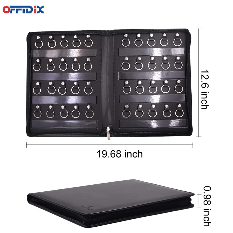 OFFIDIX Leather Key Case with Zipper Large Portable 40 Key Hooks Key Organizer Manager and Landlord Key Holder Key Cabinet for Real Estate Agent Hotel Manager