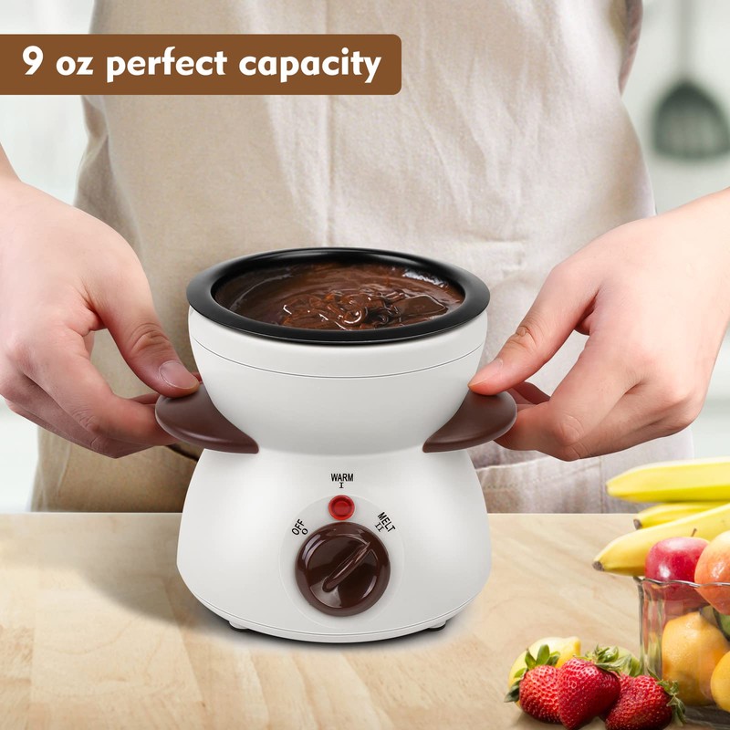 - 【High-quality materials】Our chocolate fondue pot is made of food-grade aluminum. Stable heating mode, protecting original chocolate ingredients from being destructed.Up to half a year of testing and experiment, its safety and duarability is secured. It looks perfect as we pay attention to quality and detail,we are sure your friends and kids will love it.