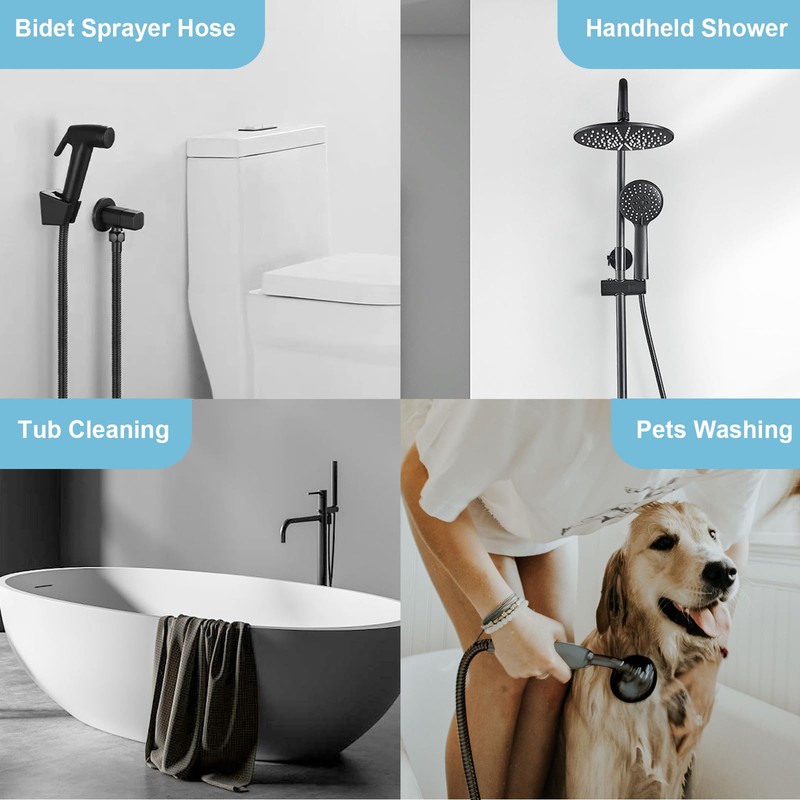 - [Multiple Uses] Suitable for your handheld bidet or your shower. Personal hygiene, toilet cleaning, cleaning hard to reach areas in your shower and bathtub, rinsing out potty chairs, bathing your pet and so much more.