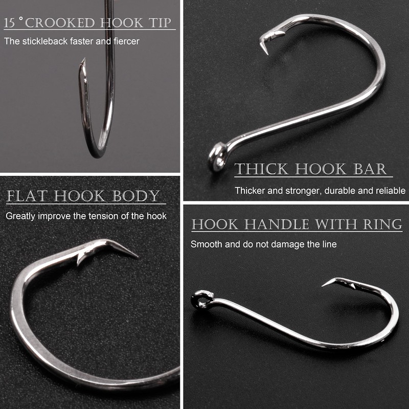 - LONGEST-LASTING BLACK NICKLE: Fishing hook is made specifically for saltwater with built-up layers of ultra-thin black finish to withstand the harsh conditions of the saltwater environment