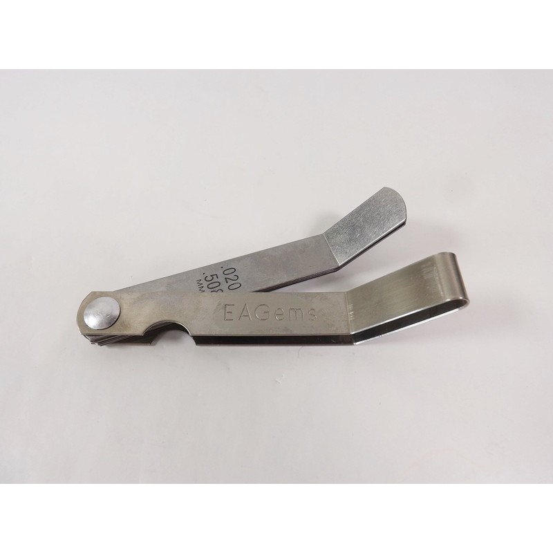 Offset Feeler Gauge Set by EAGems, for Measuring Gap Width or Thickness - Includes 16 Blades Imprinted with Inches and Millimeters, between .005-.020 inch / .127-.508 mm