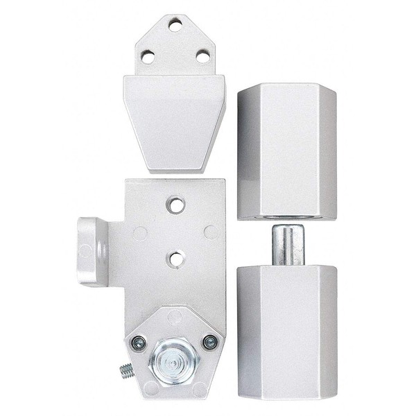 - Price For: Each Hardware: Included Mounting: Half Surface Item: Offset Pivot Hinge Material: Diecast Aluminum Load Capacity: 125 lb. Range of Motion: 180 Degrees Bearing Type: Ball Finish: Aluminum Color: Aluminum Country of Origin (subject to change): Taiwan