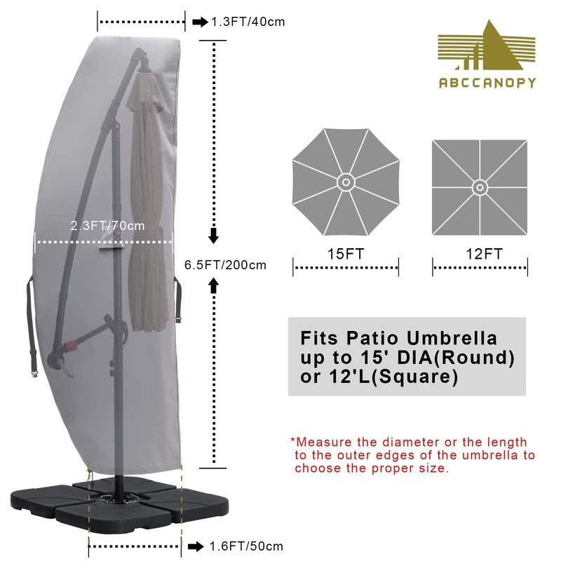 • Fit cantilever umbrellas up to 15' DIA (Round) or 12' L (Square) .