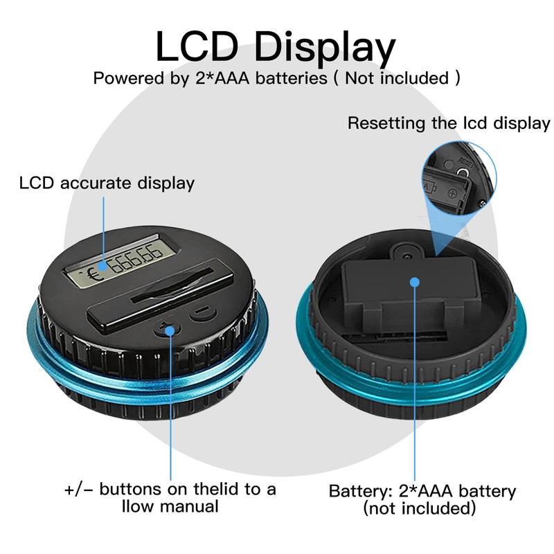 - This clear jar has a LCD screen on a lid, helps count your coins as they slip through the slot. It accurately counts your money, display the total for every deposit.