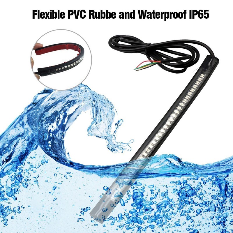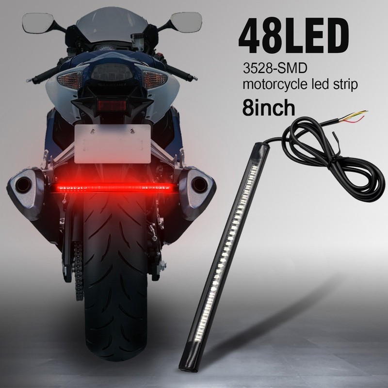 OFKPO Motorcycle End Piece LED Rear Light Strip, Signal Light Strip, Waterproof 48SMD Universal Light