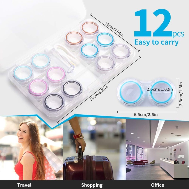 - 【What You Get】: 12 pack clear contact lens case+tweezers +contact lens remover tool+organizer case contact lens solution bottle, not only a perfect gift choice for your friends but also great for cosplayer! Your satisfaction is the driving force for our growth. We provide a 30-day worry-free warranty and a 7*24 friendly service. If you have any doubts, please contact our service team as soon as possible.Thank you for your support!
