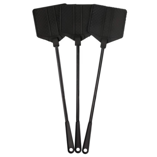 OFXDD Rubber Fly Swatter, Long Fly Swatter Pack, Fly Swatter Heavy Duty, Black Color (3 Pack)