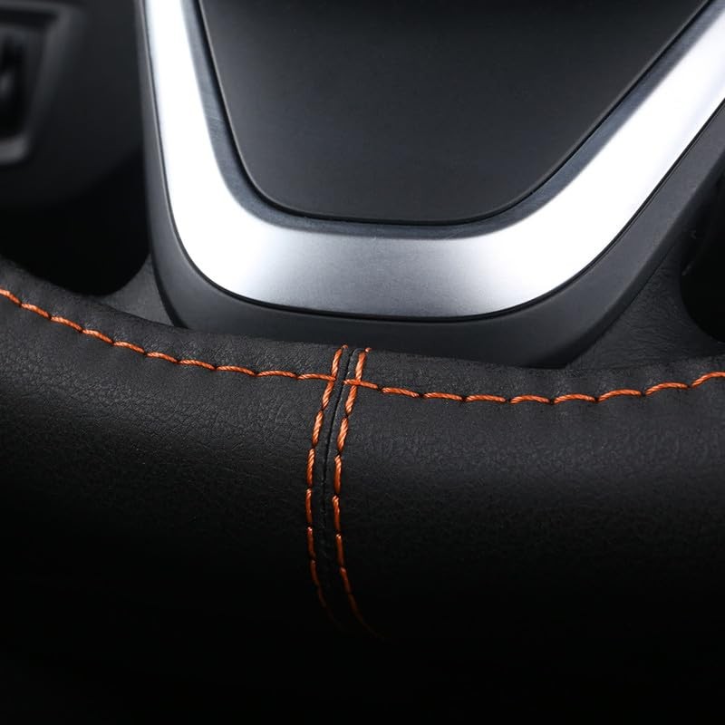 OFZVEO Auto Lenkrad Abdeckung Lenkradschutz Lenkradhülle PU Leder Universal 37-38cm / 15" rutschfest Atmungsaktiv Langlebig (Orange)