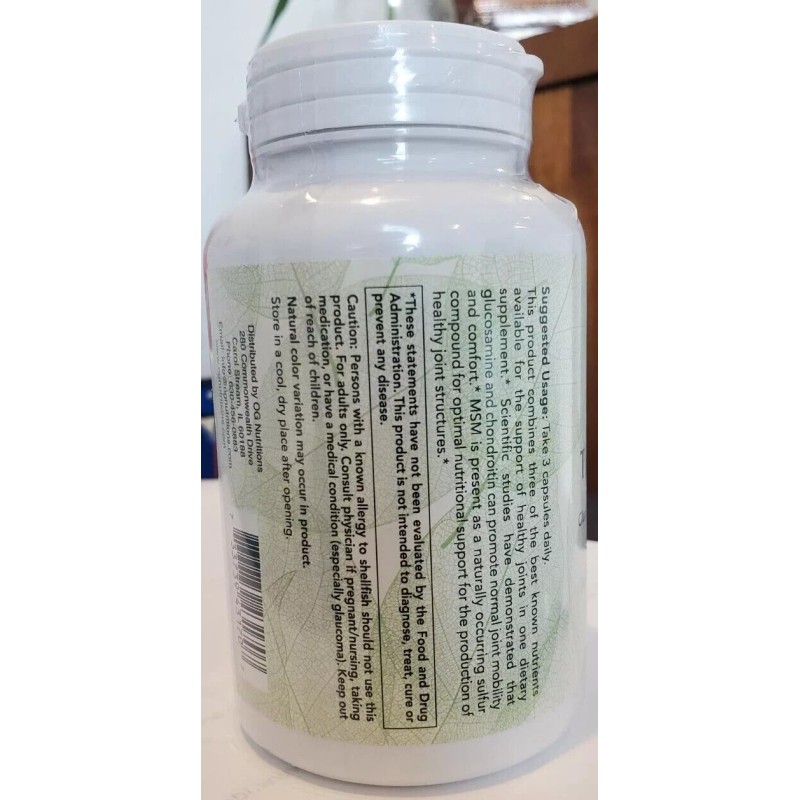OG Nutritions Triple Flex combines three of the best known nutrients available for the support of healthy joints in one dietary supplement.* Scientific studies have demonstrated that glucosamine and chondroitin can promote normal joint mobility and comfort.* MSM is present as a naturally occurring sulfur compound for optimal nutritional support for the production of healthy joint structures.*