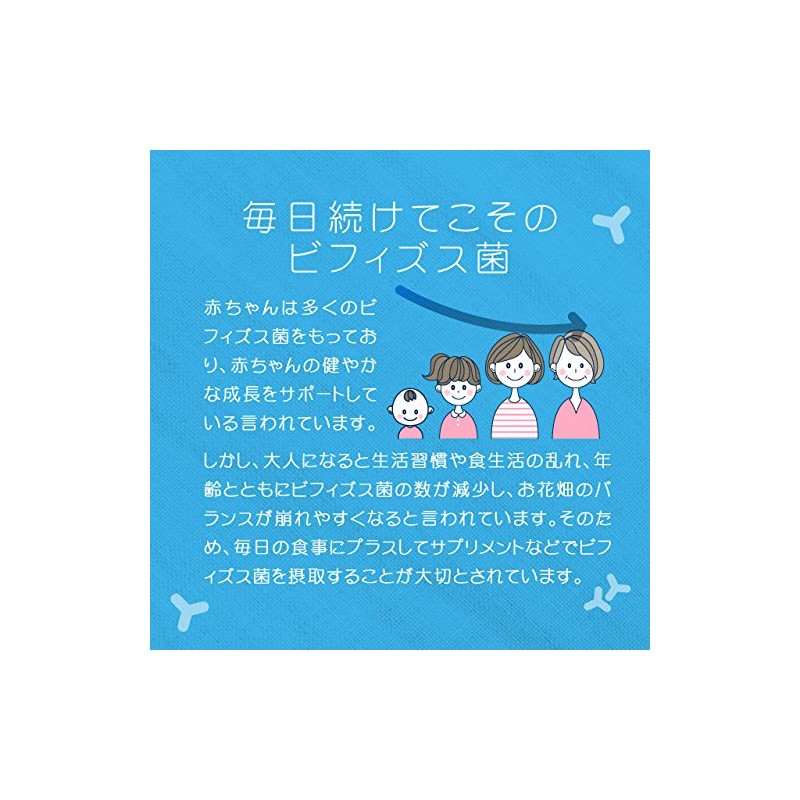 - 【毎日続けてこそのビフィズス菌】生活習慣や食生活の乱れ、年齢と共にビフィズス菌の数が減少してくると言われています。毎日の食事にプラスしてサプリメントでビフィズス菌を摂取することが大切とされています。