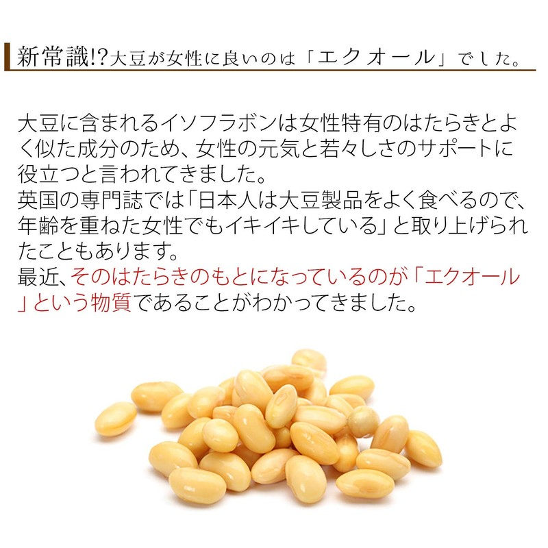 - Power of Equal: Isoflavone actually changes to equal after consumption. This equal works similar to a woman's specific ingredient. It has been shown that Japanese women have a tendency to decrease in equal production due to the European and American diet life