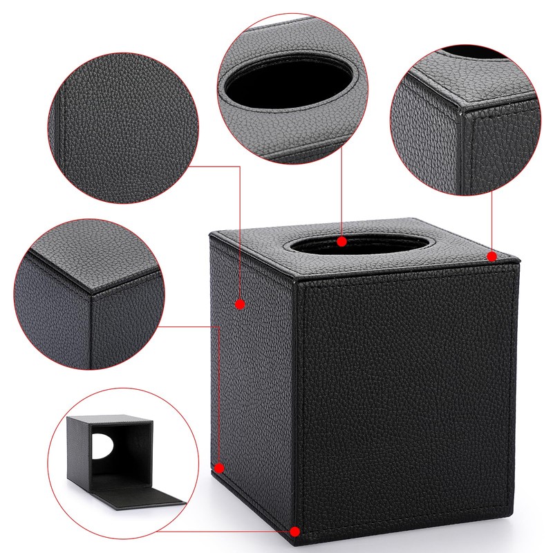 - High-quality PU Leather Materials: Our facial tissue box holder is made of soft PU leather material which is light and water-proof, so it can be freely used in wet places like bathroom, kitchen. And it is optional for people to choose when they go out because it is not so heavy
