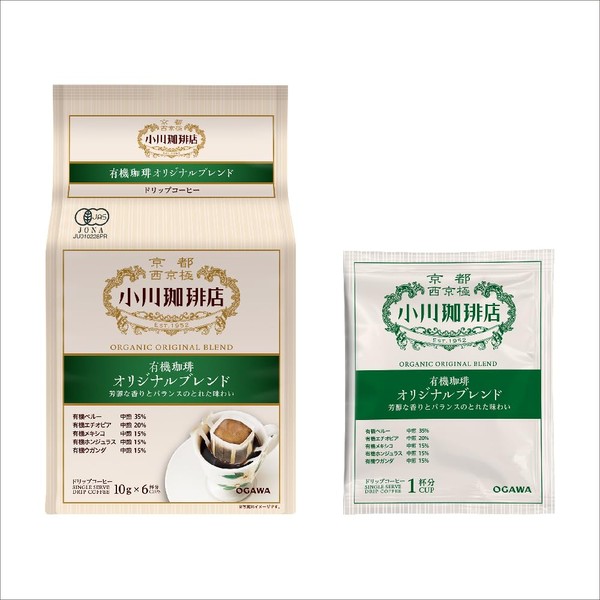 Ogawa Coffee Organic Coffee, Original Blend, Drip Coffee, 6 Cups, 0.4 oz (10 g) x 6