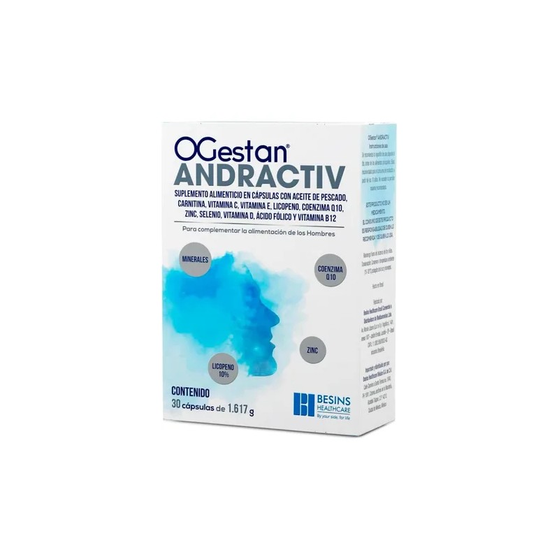 Ogestan Andractiv es un suplemento alimenticio diseñado especialmente para hombres, formulado con una combinación de vitaminas, minerales y antioxidantes que favorecen el equilibrio hormonal, la fertilidad y la salud general masculina.