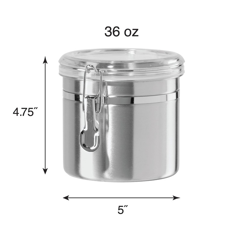Oggi Recipiente de acero inoxidable con tapa acrílica transparente y abrazadera de bloqueo para almacenamiento de alimentos, 36 onzas