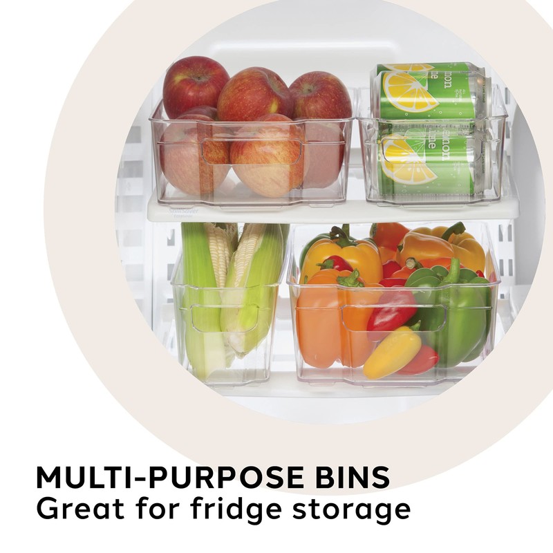 - STORE: Stackable bins maximize space for grocery organization and storage