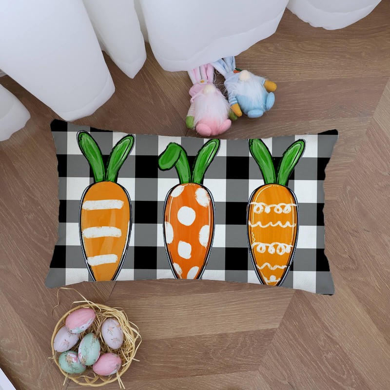 Ogiselestyle Easter Carrot Buffalo Plaid Throw Pillow Cover, 12 x 20 Inch Easter Cushion Case Decoration for Sofa Couch