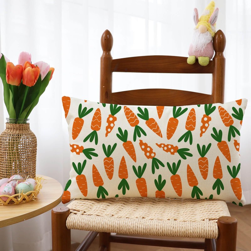 Ogiselestyle Easter Carrot Throw Pillow Cover, 12 x 20 Inch Easter Cushion Case Decoration for Sofa Couch