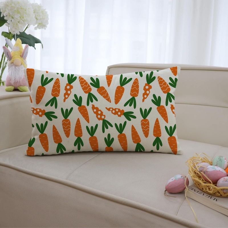 Ogiselestyle Easter Carrot Throw Pillow Cover, 12 x 20 Inch Easter Cushion Case Decoration for Sofa Couch