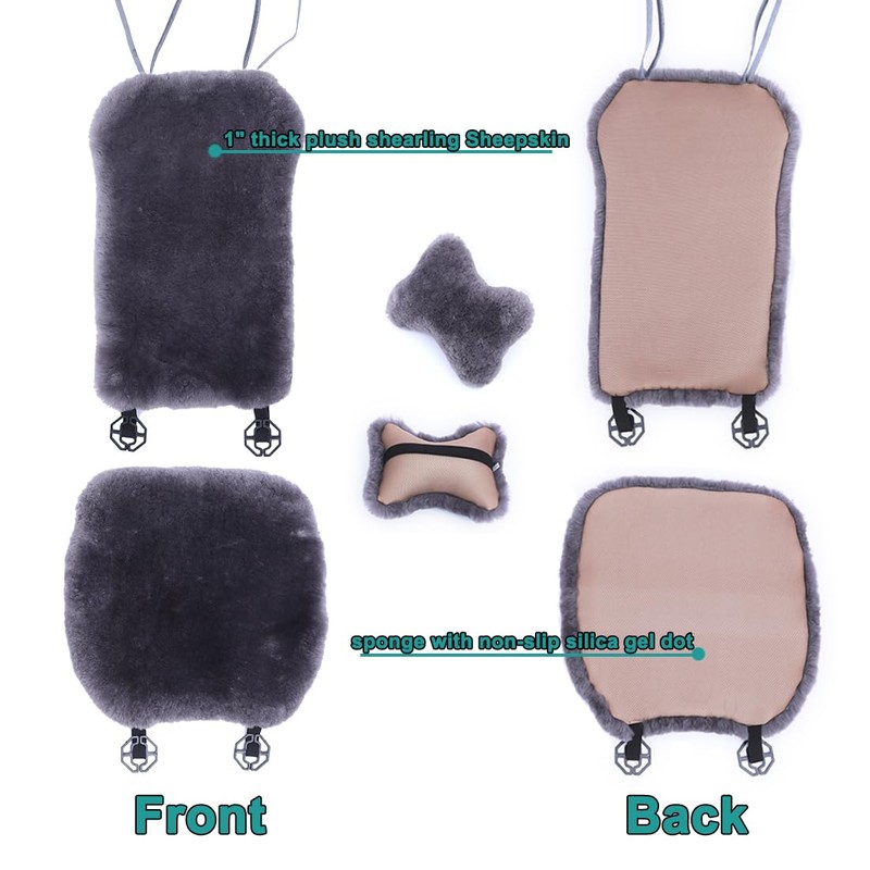 - ★ LUXURIOUS DESIGN: Unique design the perfect rear curve perfectly matches the seat and Sheepskin Pillows, which looks very luxurious. Upgrade the appearance of car's interior, protect original seat, and add comfort and style to ride. Made of plush, 100% pure Australian Merino sheepskin, this seat cover offers a luxurious, soft feel and excellent durability. With its sideless design, it is the perfect choice for seats that contain side airbags or attached armrests.