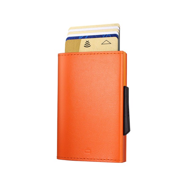 ÖGON -DESIGNS- Automatic Leather Wallet Cascade Slim - Compact Aluminum RFID Blocking Card Holder - Up to 8 Cards and banknotes (Orange)