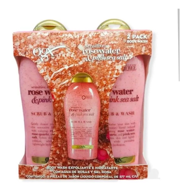2 pack Body Wash de Sal Rosa y Agua de Rosas OGX 577 ml c/u
