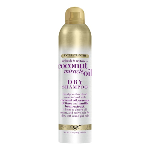 Refresh your strands with the scent of the tropics with our OGX Extra Strength Refresh & Restore + Coconut Miracle Oil Dry Shampoo. Infused with coconut oil, essence of tiare and vanilla bean extract. Helps extend your style and revive your locks. Bring life to those locks with an oil absorbing secret for the ultimate island-girl hair!