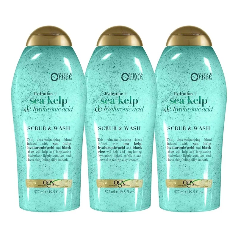 Lujo líquido: este jabón corporal líquido es un exfoliante mediano que hace espuma en una rica espuma y se enjuaga para revelar una piel más suave y flexible; limpia tu cuerpo y despierta tus sentidos con OGX Sea Kelp & Acid Wash & Scrub; Exfoliación suave, hidratación a largo plazo: Exfolia y nutre suavemente la piel con una hidratación duradera; este gel de baño de algas marinas limpia, suaviza e hidrata la piel mientras exfolia; Con algas marinas y ácidos hialurónicos: la fórmula de limpieza con infusión de algas marinas funciona horas extras con una mezcla de algas marinas profundamente hidratantes y ácido hialurónico, además de exfoliar suavemente arroz negro; Para todos los tipos de piel: este exfoliante versátil proporciona una humedad duradera y una exfoliación suave a media; Funciona para todo tipo de piel, pero es especialmente útil para aquellos con piel seca que necesitan su humedad para llegar a la distancia. Exfolia e hidrata suavemente la piel con OGX Sea Kelp & Acid Wash & Scrub. Este jabón líquido limpiador corporal es un exfoliante mediano que hace espuma en una rica espuma y se enjuaga para revelar una piel más suave y flexible. La fórmula de limpieza con infusión de algas marinas funciona con el tiempo con una mezcla de algas marinas profundamente hidratantes y ácido hialurónico, además de exfoliar suavemente el arroz negro. Este versátil gel corporal hidratante proporciona una humedad duradera y una exfoliación suave a media. Funciona para todos los tipos de piel, pero es especialmente útil para aquellos con piel seca que necesitan su humedad para llegar a la distancia. Este exfoliante hidratante está fabricado con orgullo con todas las cosas buenas y sin tensioactivos sulfatados.