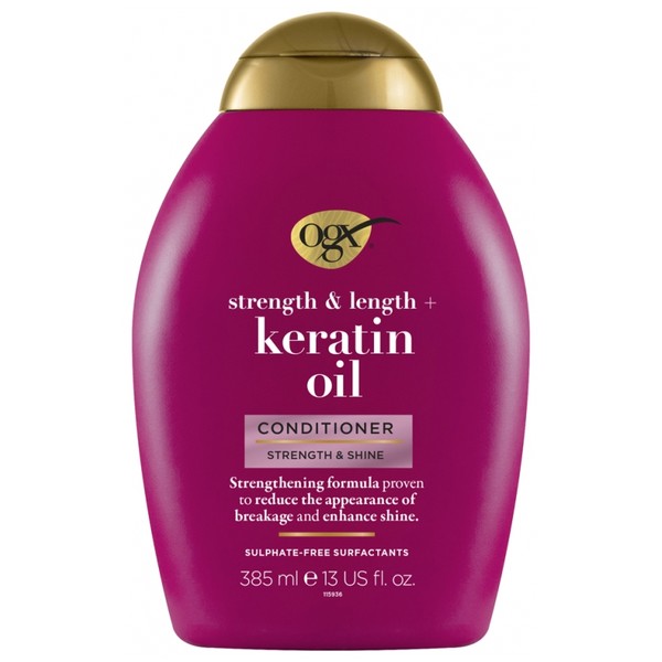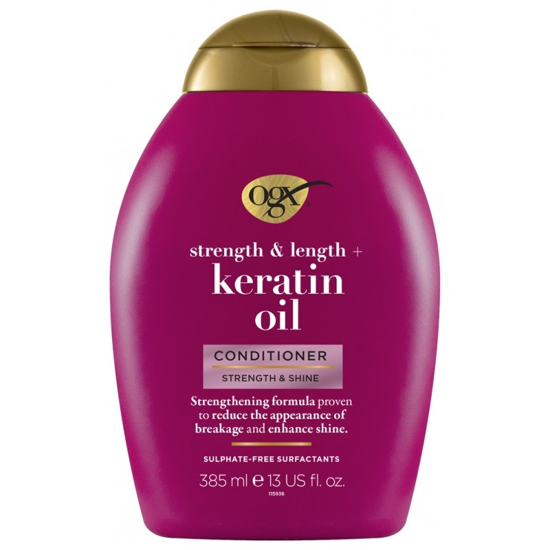 Ogx Keratin Oil Conditioner 385 ml is a conditioner offering strength, length and shine to damaged, brittle hair. With keratin oil, it helps prevent breakage caused by brushing and styling, protects against split ends and flyaways, while enhancing shine. Hair is strengthened and nourished from within, helping to maintain longer, stronger hair.