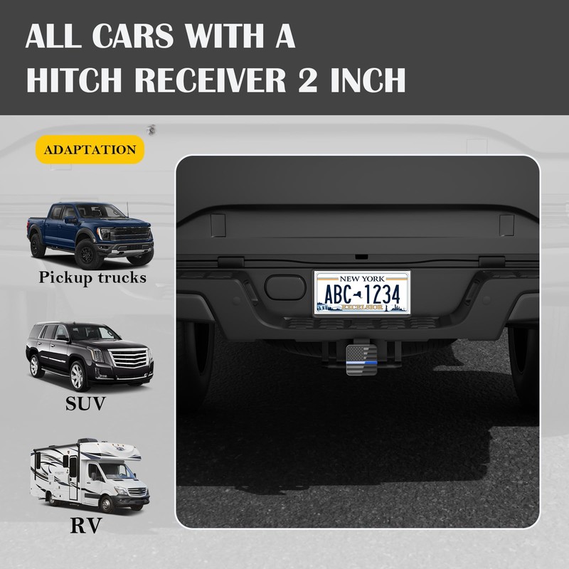 - [Universal Design]Fits most 2-inch trailer hitch receivers on trailers, SUVs, Jeeps, RVs, cars, pickup trucks, etc. It is recommended to measure the size of the hitch receiver before purchase.