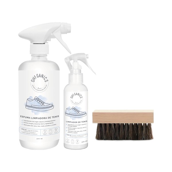 - Incluye: Espuma Limpiadora de Tenis 500 ml, Limpiador de tenis 100 ml, Cepillo de calzado con cerdas de nylon