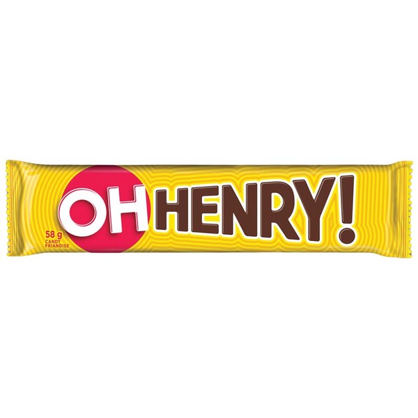 Oh Henry! 10-Pack of Full Size Chocolatey Candy Bars, 58g/2.05 oz each, Crunchy Peanuts, Chewy Fudge, Creamy Caramel, Covered in a Chocolatey Coating, Imported from Canada