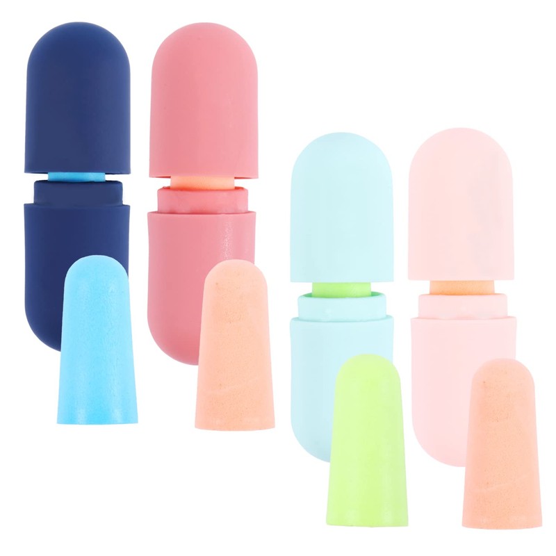 - (Can be used in a variety of locations) These ear plugs are designed to prevent snoring while sleeping, to focus on work or studying, and to reduce noise when using transportation such as airplanes, trains, buses, etc. Please use it freely according to the environment you want to block sound in your life. Product Specifications: Color: Blue, Green, Red, Pink; Material: Sponge. Size: Ear Plug: 1.0 x 0.4 inches (2.5 x 1 cm); Package: Approx. 2.0 x 0.8 inches (5.1 x 2 cm)