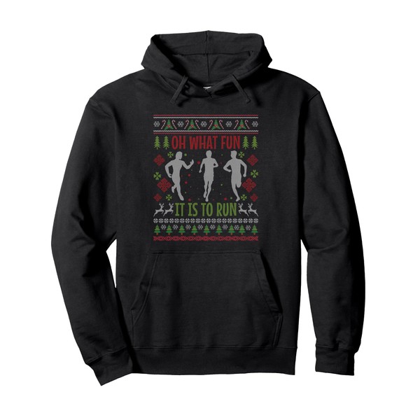 Oh What Fun It Is To Run Funny Running Ugly Christmas Pullover Hoodie