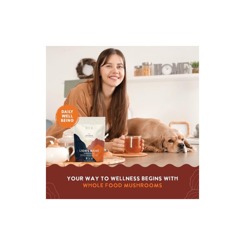 Ohana Lion’s Mane, Organic Mushrooms Powder Blend, USDA-Organic Whole Food Mushroom Supplement, Non-GMO, Gluten-Free, 7.06 oz Bag, Pack of 1