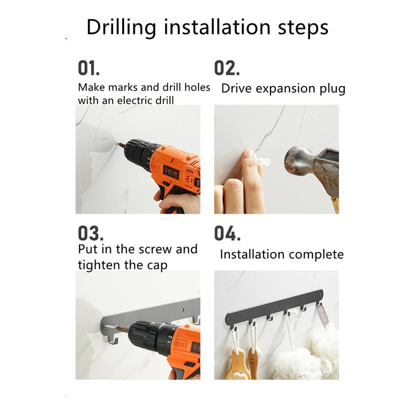- 2 installation methods:Simple and elegant key hook is easy to install,there are 2 installation methods, screw drilling installation as well as adhesive installation. Drilling holes: Use the included screw set to drill holes for installation and you are ready to ues. Adhesive installation: Apply the adhesive, stick it to the wall .