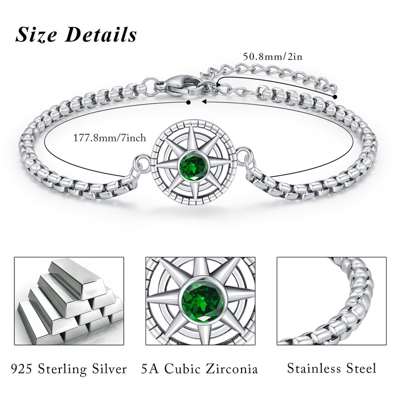 - Birthstone Bracelet: The compass pattern bracelet is made of 925 sterling silver, ensuring durability and quality. It is decorated with a birthstone of your choice that gives it a personal touch and represents your unique journey.