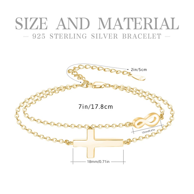 - Specifications: Infinity cross bracelet size: 18 x 12 mm (inches); chain: 7 + 2; net weight: 2.3 g; these cross bracelets are not only suitable for daily wear, but also for special occasions as they are very eye-catching.