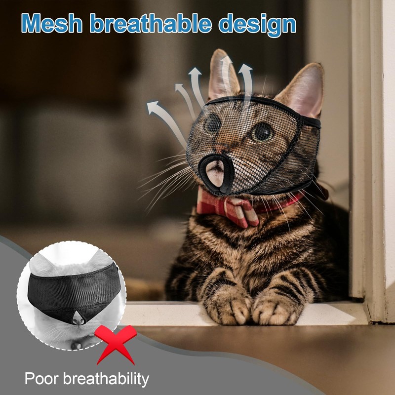 OHCOZZY Cat Muzzle for Grooming Nail Trimming with Soft Mesh Covered, Prevent Biting Chewing(L, Black)