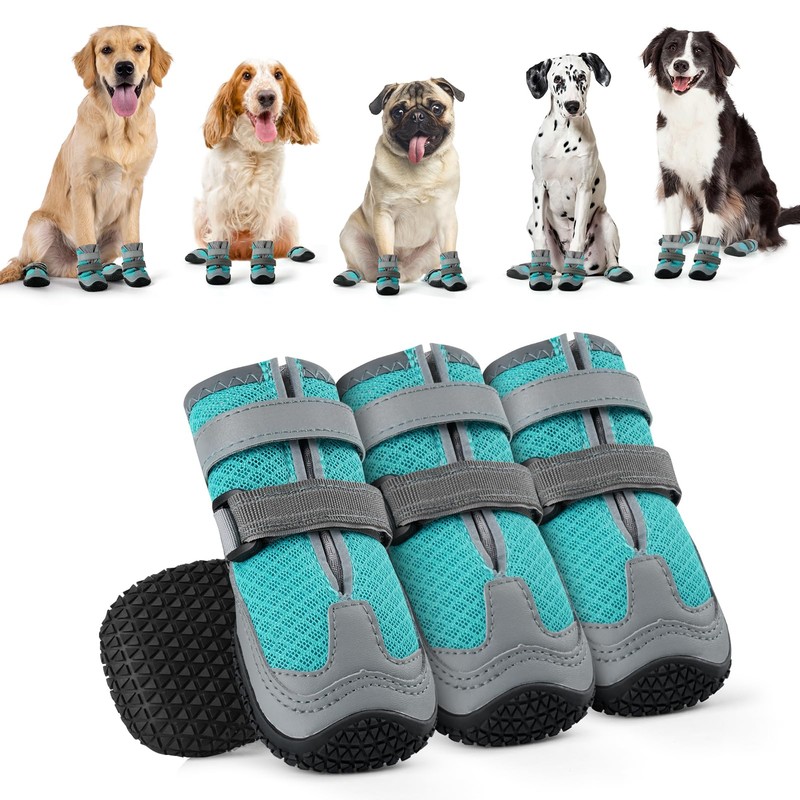 - QUALITY MATERIAL: The dog boots are composed of breathable mesh upper, soft lined inside and anti-slip rubber. Mesh upper keeps the shoes lightweight and Breathable keeps dogs free. These dog shoes for walking would be a great choice in the summer.