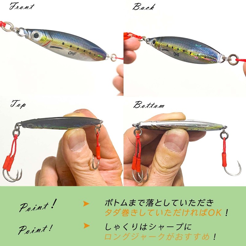 - Avoid baldness with a compact design. Since the silhouette looks small, it is effective for hairtail and mackerel. I want to get rid of big fish in the gaps of the reefs, but no matter how many lures I have, it's not enough! It is a perfect product for those who say.