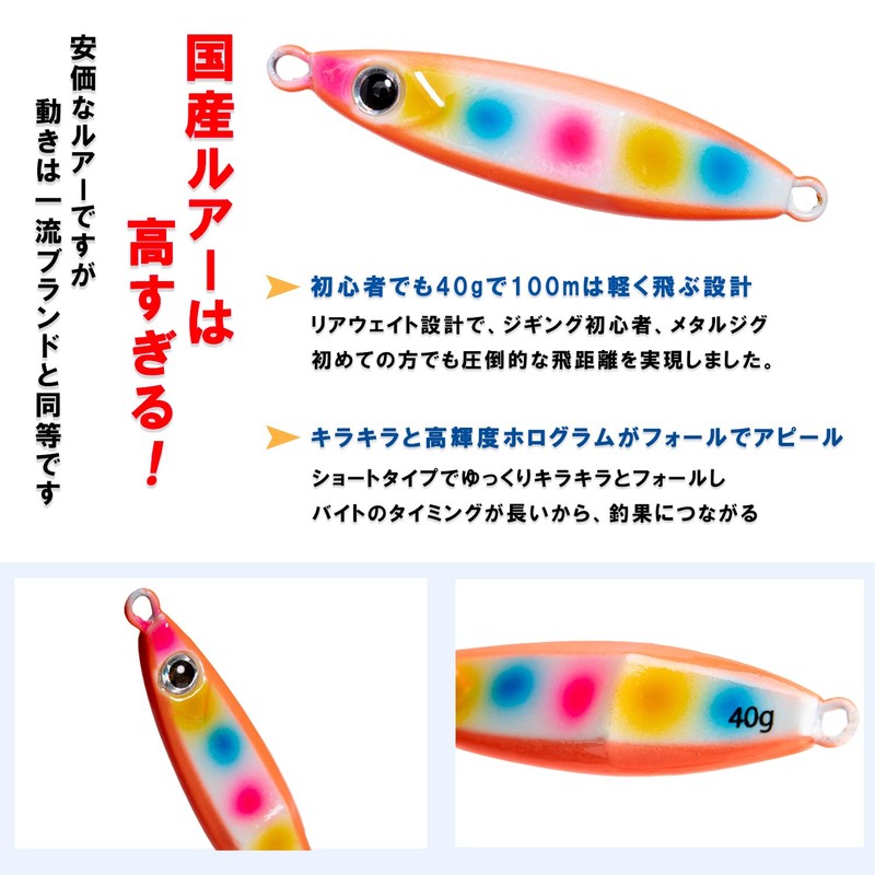 OHF Metal Jig Set, Lure, Slow Jig, 1.4 oz (40 g), 2.4 oz (60 g), 80 g, 3.5 oz (100 g) Compatible with Luminous Slow Falls, For Blue/Root Fish