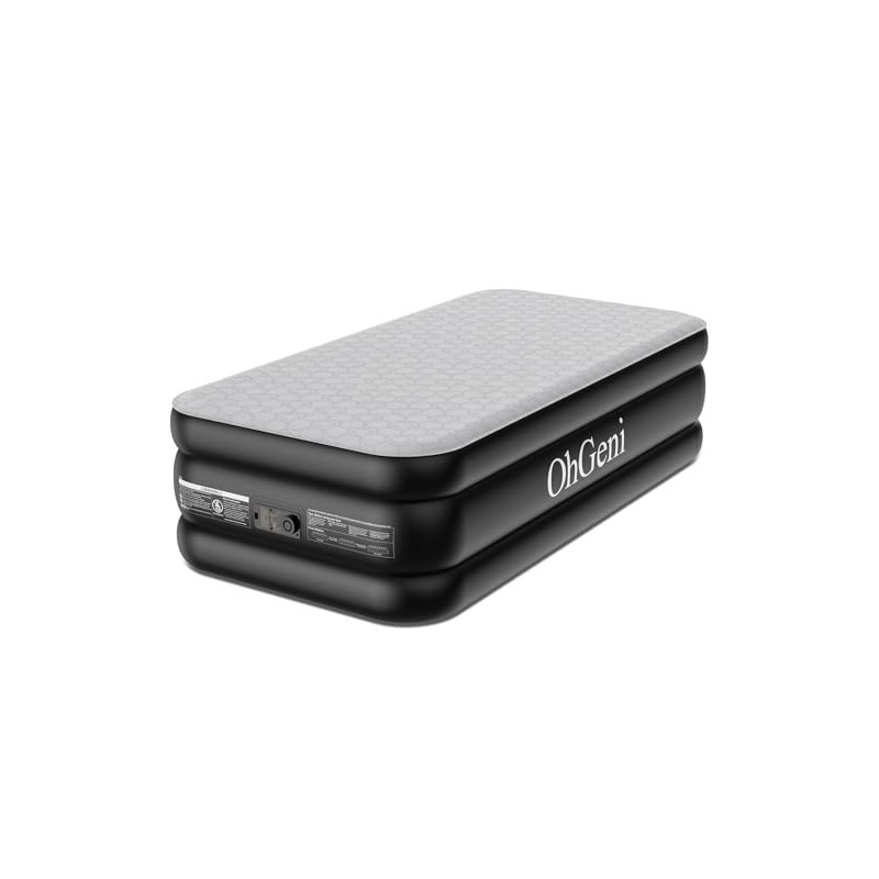 OhGeni Luxury Twin Air Mattress with Built-in Pump, Silk Foam Topper for Superior Comfort, 20" Raised Inflatable Bed, Blow-Up Mattress for Home, Camping & Guests, Easy Setup, Extra Support, Black