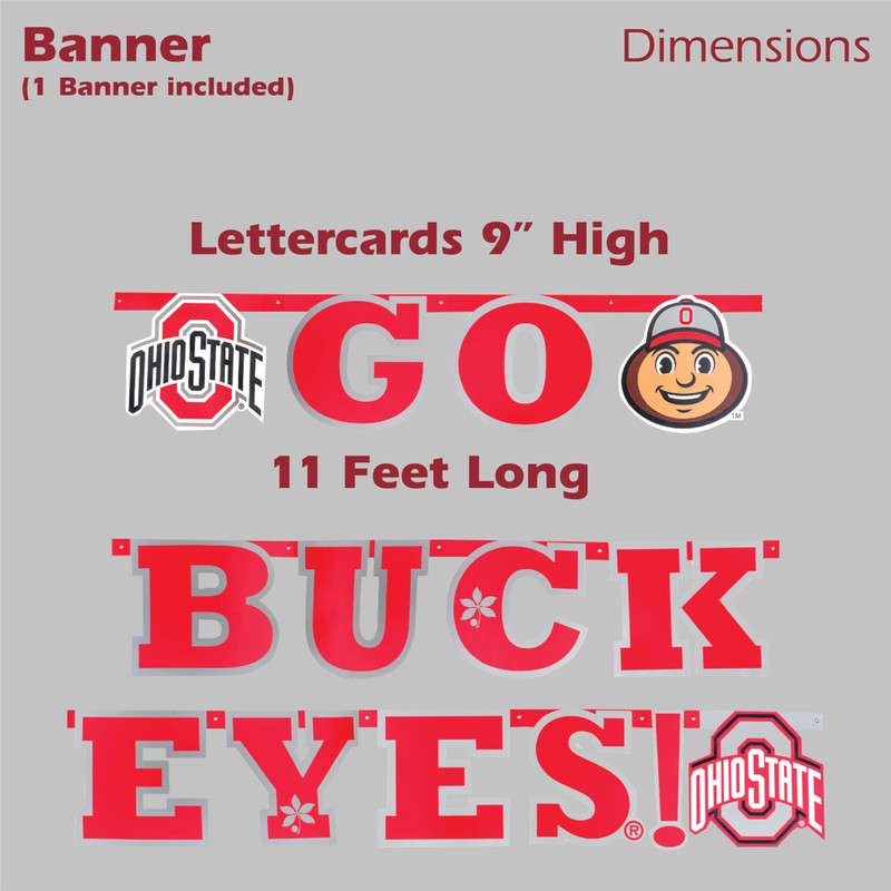 - Bufanda vibrante y gris: adornado con los colores escarlata y gris característicos de Ohio State, el banner es un tributo visual a los Buckeyes. Cada letra individual en la pancarta mide 8 - 10 pulgadas de alto. La pancarta se estira hasta 10 pies de largo.