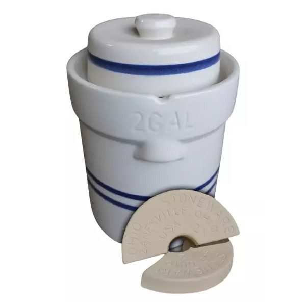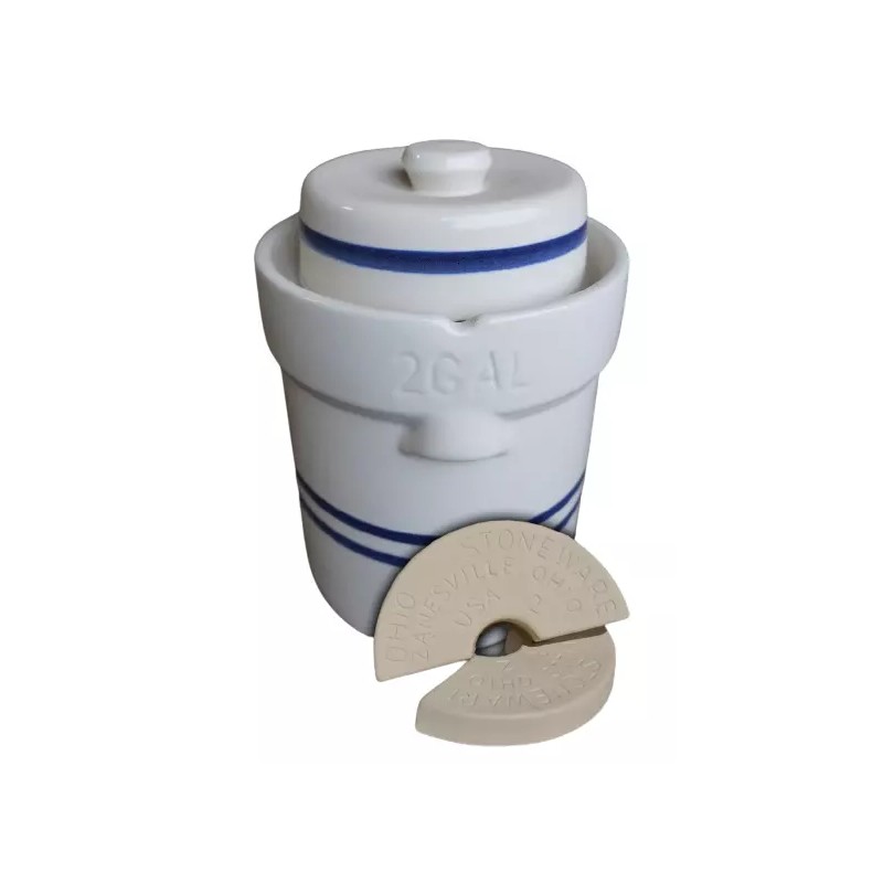 OHIO STONEWARE 2 Gallon Water Seal Fermentation Pot - Crock Kit - Includes Stones and Lid.