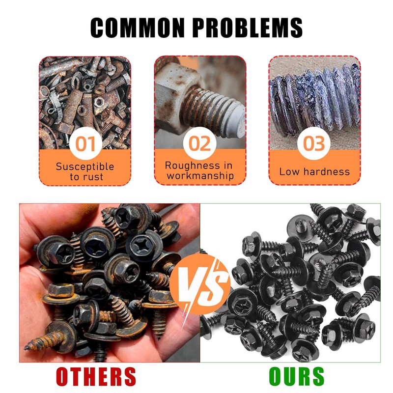 - 【Durable Material】: Made from premium steel, these bolts offer superior strength and resistance to the elements. Such a high-quality material makes sure that these splash shield screws can remain intact under extreme conditions, effectively resisting corrosion over time.